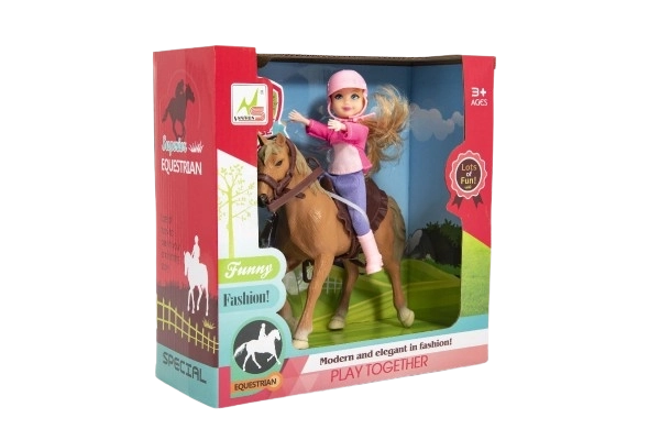Descoperă farmecul lumii echitației cu acest set adorabil pentru micile iubitoare de cai. Păpușa jocheu în ținută de călărie cu cască și căluțul ei cu coamă lungă oferă o experiență de joc realistă. Jucăria este realizată din plastic de calitate și rezistent, este sigură pentru copiii de la 3 ani și, datorită dimensiunilor compacte, se transportă ușor.