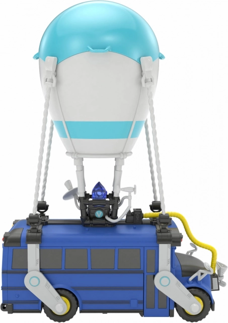 Replică autentică a celebrului vehicul de transport din FORTNITE, cu balon albastru-alb proeminent și detalii atent lucrate pentru o atmosferă de joc maximă.