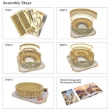 Modelul este o replică autentică a celebrei arene din Roma, una dintre cele mai mari lucrări inginerești ale lumii antice. Pachetul include și un ghid despre Roma italiană în limba engleză. Datorită pieselor perforate pe care le scoateți cu ușurință din foaie, vă puteți concentra pe distracția asamblării fără a fi nevoie de lipici și foarfecă.