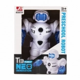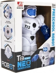 Robotul este echipat cu efecte de lumină și sunet, care asigură un joc captivant și educativ.