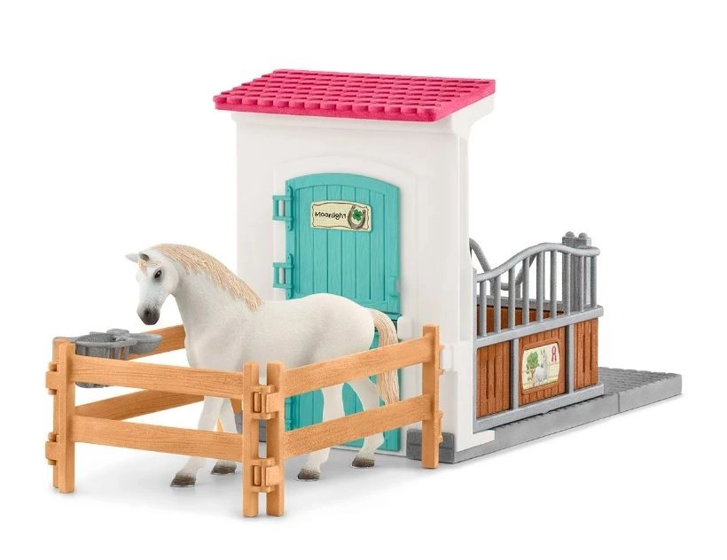 Acest grajd pentru cai din colecția Schleich Horse Club este ideal pentru toți micii iubitori de cai. Oferă cailor un refugiu confortabil cu un jgheab și un adăpător, astfel încât să se poată odihni bine.
