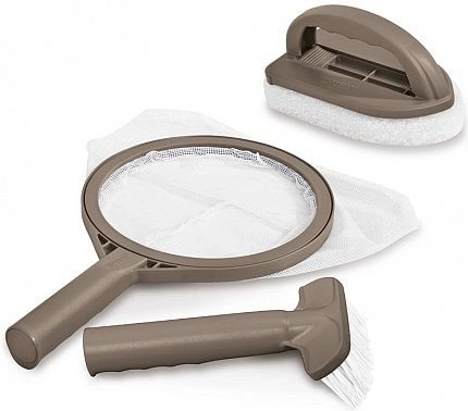 Setul include o perie curbată pentru îngrijirea pereților laterali interiori, o sită pentru impurități și un burete de curățare pentru eliminarea murdăriei.