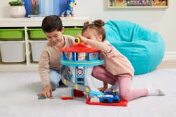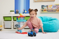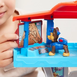 Pune-l pe Chase în civil în partea din față a liftului și pe Chase eroul în spate. Ridică liftul și urmărește cum Chase în civil se transformă în Chase eroul. În vârful turnului, alege una din cele 3 cărți de misiune cu două fețe și află care este sarcina zilei. Când este timpul pentru o acțiune de salvare, alunecă pe tobogan direct în mașina de poliție Chase și pornește în acțiune apăsând lansatorul de mașini. Pentru și mai multă distracție, poți colecționa și alte căţeluşi ca Marshall, Skye și Rubble cu vehiculele lor.