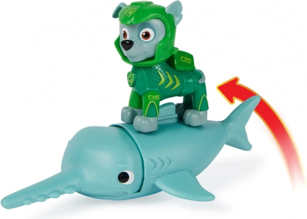Rocky într-un neopren complet nou și prietenul lui loial, peștele fierăstrău. Așază-l pe Rocky pe înotătoarea de pe spatele peștelui fierăstrău, împinge peștele fierăstrău înainte pentru a activa mișcările capului său și pornește într-o misiune de salvare. Potrivit de la 3 ani.