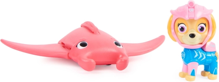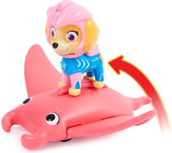 Skye în neopren nou-nouț și prietena ei loială, manta. Așază-o pe Skye pe înotătoarea de pe spatele mantei, împinge manta înainte pentru a activa mișcarea fâlfâitoare a înotătoarelor ei și pornește într-o acțiune de salvare. Potrivit de la 3 ani.