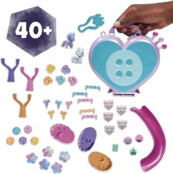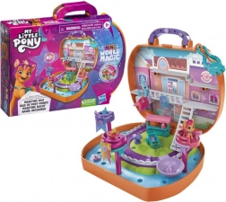 Creează-ți propria lume de mini-prieteni magici din toată Equestria! Seturile My Little Pony Mini World Magic sunt alcătuite din mici scene și figurine adorabile inspirate de seria My Little Pony: Tell Your Tale. Acest set Compact Creation include 2 figurine drăgălașe de 1 inch: Sunny Starscout și Choco Cozy! Vine cu peste 40 de piese pentru personalizarea scenei din Maretime Bay. Construiește lumea folosind garduri și trepte, asamblează căruciorul de smoothie al lui Sunny și agață stegulețele din material. Atașează accesoriile și piesele de construcție la setul de joacă pentru a crea o mini lume, apoi personalizează scena cu folia de abțibilduri inclusă. Plasează accesoriile cu pietre prețioase în sită și adaugă apă rece pentru a produce o schimbare de culoare. Imaginează-ți că descoperi o comoară pe plajă alături de Sunny și Choco Cozy! Totul este depozitat într-o valiză portabilă pentru distracție în călătorii. Această jucărie este un cadou grozav de sărbători sau de ziua de naștere pentru copiii de la 5 ani în sus!