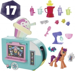 Serviți puțină magie cu setul Sunny Starscout Smoothie Truck 2‑în‑1 My Little Pony. Sunny este un ponei terestru aventuros care pregătește bunătăți dulci în camioneta ei mobilă de smoothie din My Little Pony: Make Your Mark. Setul My Little Pony include o figurină de 3 inch cu articulații, pe care copiii o pot așeza în diverse poziții. Acest set de joacă cu camioneta de alimente pentru copii se deschide într-o bucătărie cu mâncare de jucărie! Imaginați-vă că pregătiți brioșe de jucărie în cuptor sau smoothie-uri în blender. Apăsați copita jucăriei Sunny Starscout pe maneta camionetei pentru a aprinde lumina neon și a deschide fereastra camionetei. Apoi deschideți camioneta și descoperiți bucătăria din interior. Include 15 accesorii, dintre care unele se atașează la copita lui Sunny. Camioneta cu alimente My Little Pony, seturile de joacă pentru copii și păpușile mici sunt cadouri grozave de ziua de naștere pentru fete și băieți de la 5 ani.