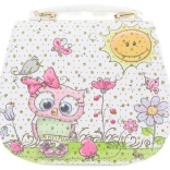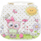 Această geantă albă cu bufniță este accesoriul perfect pentru micile domnișoare. Datorită dimensiunilor compacte se poartă confortabil și încape tot ce are copilul nevoie să aibă la îndemână – batiste, jucării mici sau comori din plimbare.