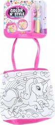 Transformă o geantă simplă într-un accesoriu de modă unic. Această geantă de colorat le permite copiilor să își exprime imaginația datorită markerelor speciale pentru textile și pietricelelor decorative incluse. Rezultatul final poate fi purtat cu mândrie în fiecare zi.