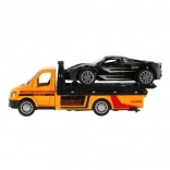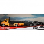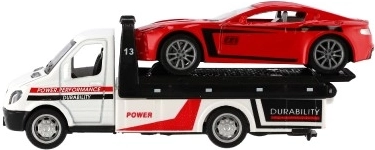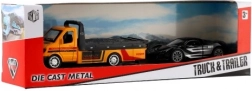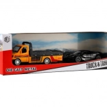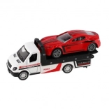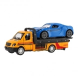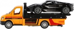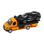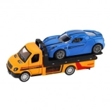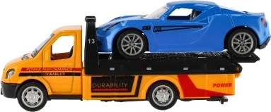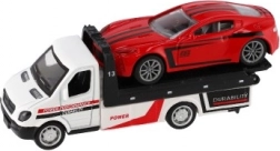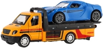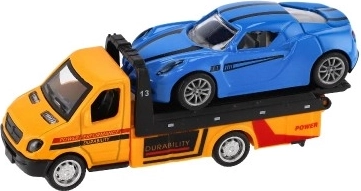 Această autospecială de tractare realistă, cu o mașinuță sport încărcată, completează parcul auto al copiilor cu un vehicul de lucru îndrăgit. Datorită mecanismului pull-back, este suficient să împingi, să eliberezi și să urmărești acțiunea – perfect pentru scenarii din oraș, de pe șosea sau din service.