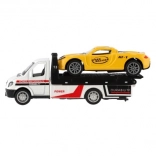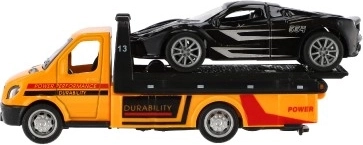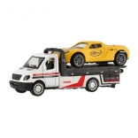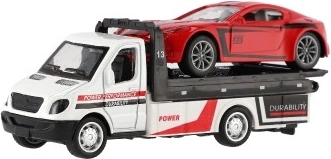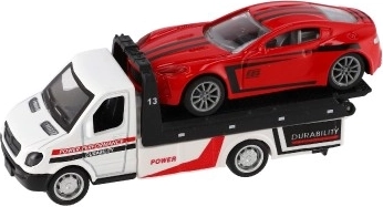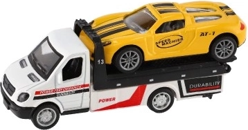 Mică, dar performantă, autospeciala de tractare cu mașinuță îi va încânta pe toți micii șoferi. Datorită mecanismului cu întoarcere (pull-back), vehiculele pornesc sprinten, iar construcția metal–plastic asigură rezistență și detalii reușite. Dimensiunea compactă de 11 cm este ideală pentru joacă acasă și în deplasare.