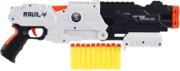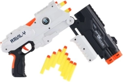 Blasterul are o construcție durabilă din plastic și elemente coloristice pronunțate pentru vizibilitate mai bună. Cu setul de 10 săgeți din burete poți trage repetat fără a căuta des proiectilele. O idee excelentă de cadou pentru copiii de la 6 ani care iubesc acțiunea și mișcarea.
