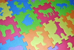 Puzzle din spumă cu animăluțe. Conține 36 de piese. Dimensiunea unei piese: 15,5 x 15,5 cm. Dimensiunile ambalajului: aproximativ 44 x 30 x 5 cm. Vârsta: 3+