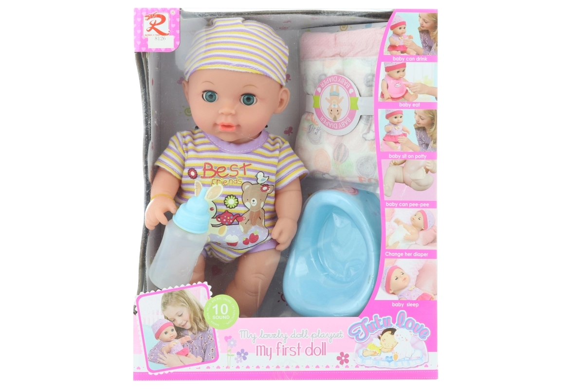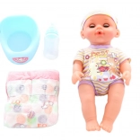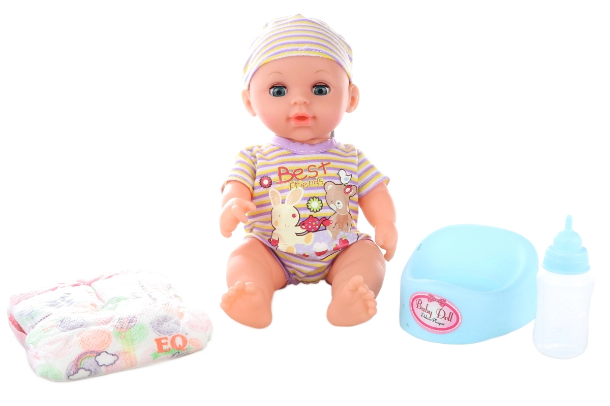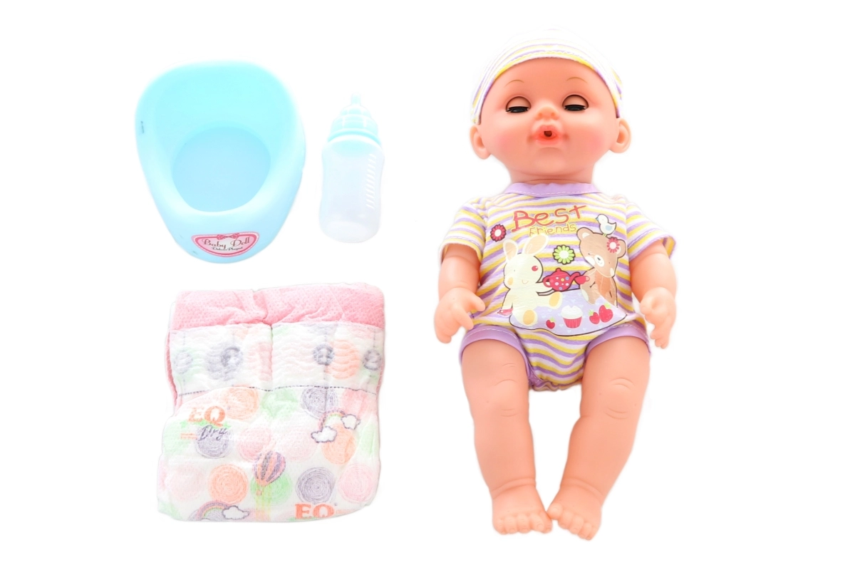 Pachetul conține tot ce este necesar pentru ore întregi de distracție: scutec, oliță și sticluță. Păpușa este ușoară și ușor de ținut chiar și de către copiii mai mici. Datorită dimensiunilor compacte, este potrivită pentru călătorii și depozitare.