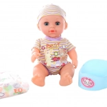 Copiii pot hrăni bebelușul cu sticluța și îl pot așeza pe oliță. Funcția de făcut pipi susține învățarea obiceiurilor de igienă prin joc.