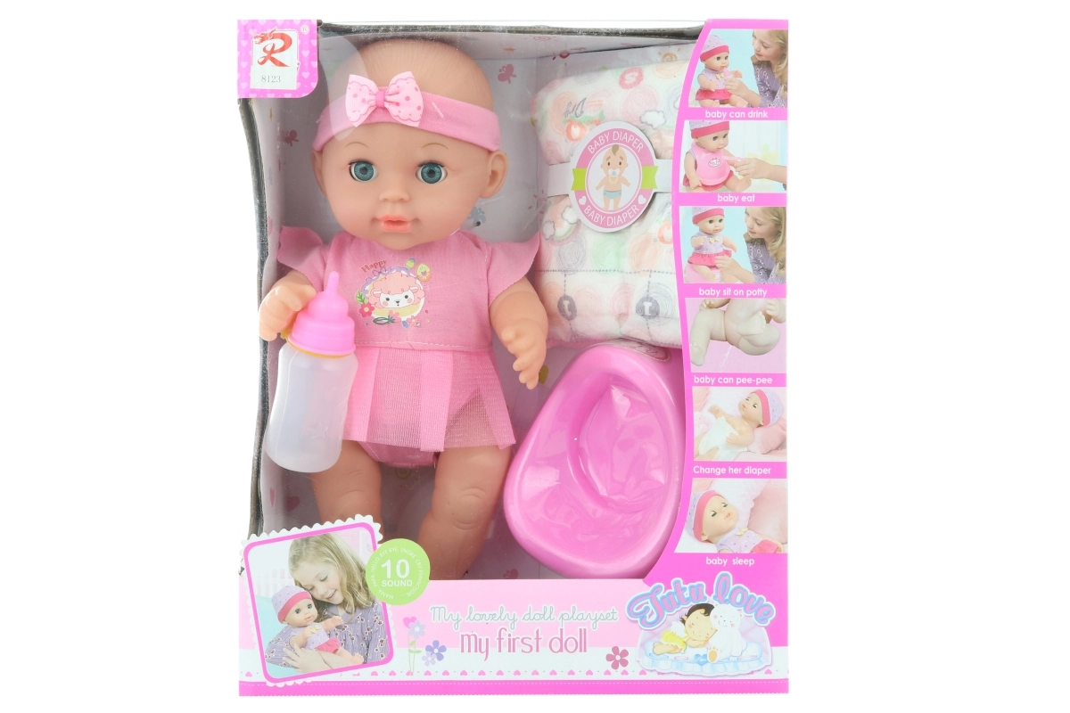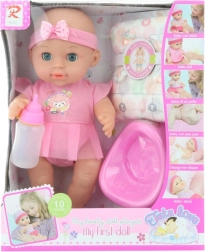 Acest bebeluș interactiv îi va încânta pe toți copiii care iubesc jocurile de rol de părinți. După activarea bateriilor, bebelușul emite efecte sonore, iar datorită funcției de pipi, joaca devine și mai realistă. Setul conține tot ce este necesar pentru îngrijire – de la hrănire la schimbat.