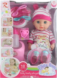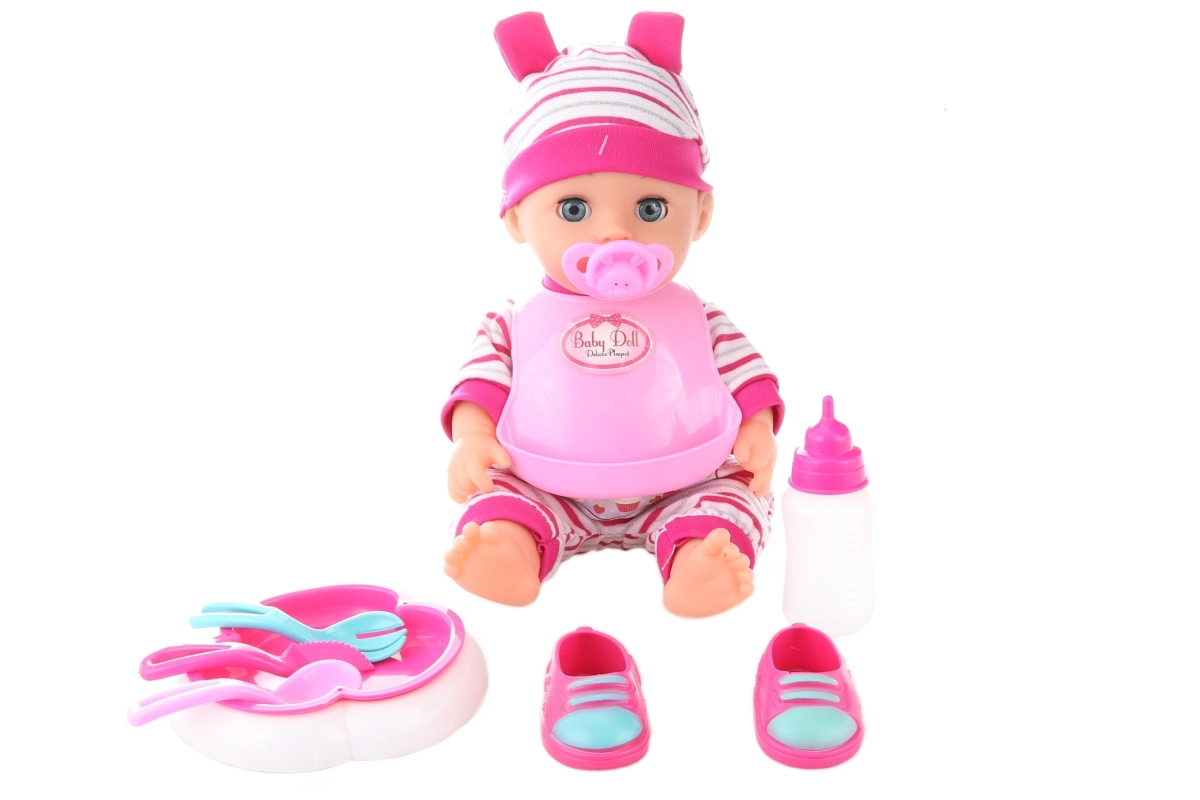 - Set bogat de accesorii: botoșei, bavetă, biberon, farfuriuță și alte accesorii.