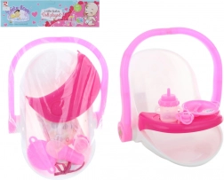 - Set complet pentru îngrijirea păpușii – farfurioară, tacâmuri, scutec, biberon(e) și alte accesorii