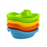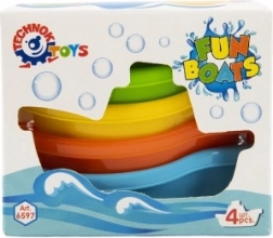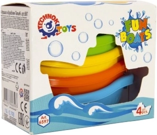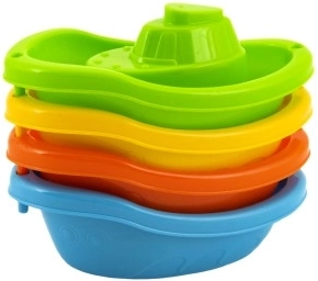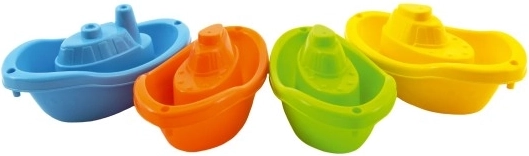 Setul conține patru bărcuțe în culori vii – albastru, portocaliu, verde și galben, care pot fi ușor stivuite pentru depozitare facilă. Forma și culorile bărcuțelor stimulează imaginația și creativitatea copiilor în timpul jocului în apă.
