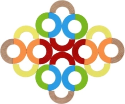 Acest mozaic versatil din lemn oferă posibilități nelimitate de joacă – de la construirea de turnuri și poduri până la aranjarea de modele simetrice și sarcini de echilibru. Piesele robuste, șlefuite fin și în culori vii invită la explorare și îi învață pe copii concentrarea și coordonarea mână–ochi.