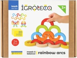 Arcadele curcubeu și semicercurile pot fi aranjate în turnuri, poduri și provocări de echilibru. Astfel, copiii își dezvoltă concentrarea, stabilitatea și percepția spațială.