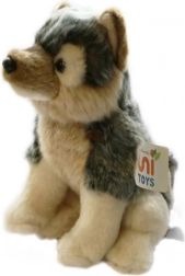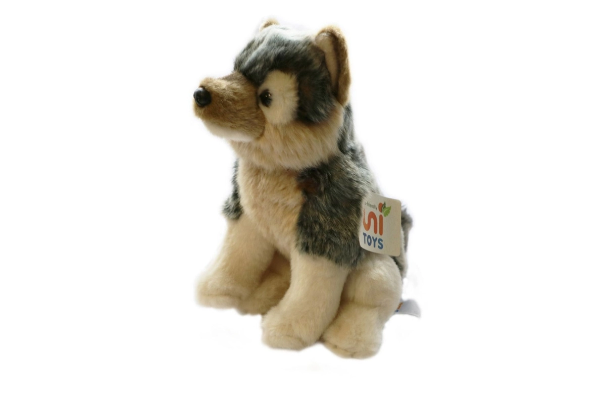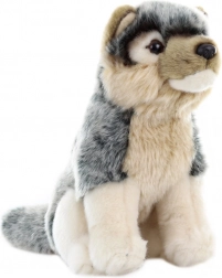 Vulpe de pluș (lup) așezată, cu dimensiuni de aproximativ 20 x 24 x 11 cm (fără coadă). Lungimea cozii aproximativ 9 cm. Vârsta 0+