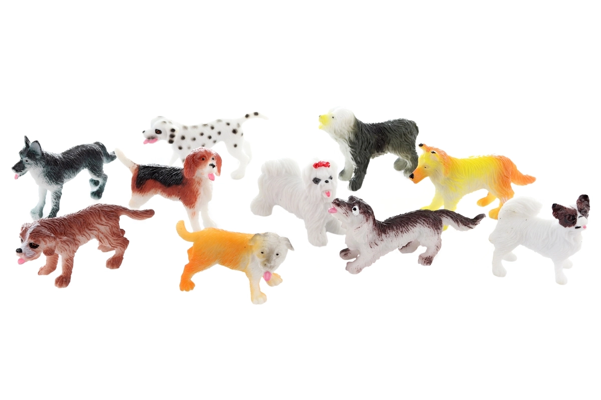 Set distractiv de căței din plastic pentru micii iubitori de animale. Pachetul conține 10 figurine diferite, care dezvoltă imaginația și jocul de rol. Execuție durabilă, diverse tipuri de căței și dimensiune compactă ideală pentru călătorii și acasă. Potrivit pentru copii de la 3 ani.