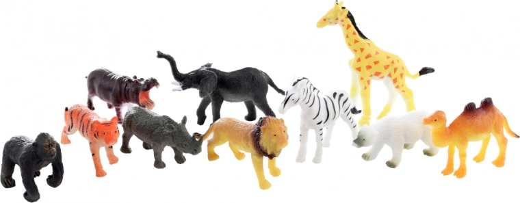 Acest set include animale sălbatice îndrăgite de copii: leu, girafă, elefant, tigru, rinocer, zebră, gorilă, cămilă, urs polar și hipopotam. Figurinele sunt din plastic rezistent, au o dimensiune plăcută pentru mâinile mici și susțin dezvoltarea imaginației, a vocabularului și a motricității fine.