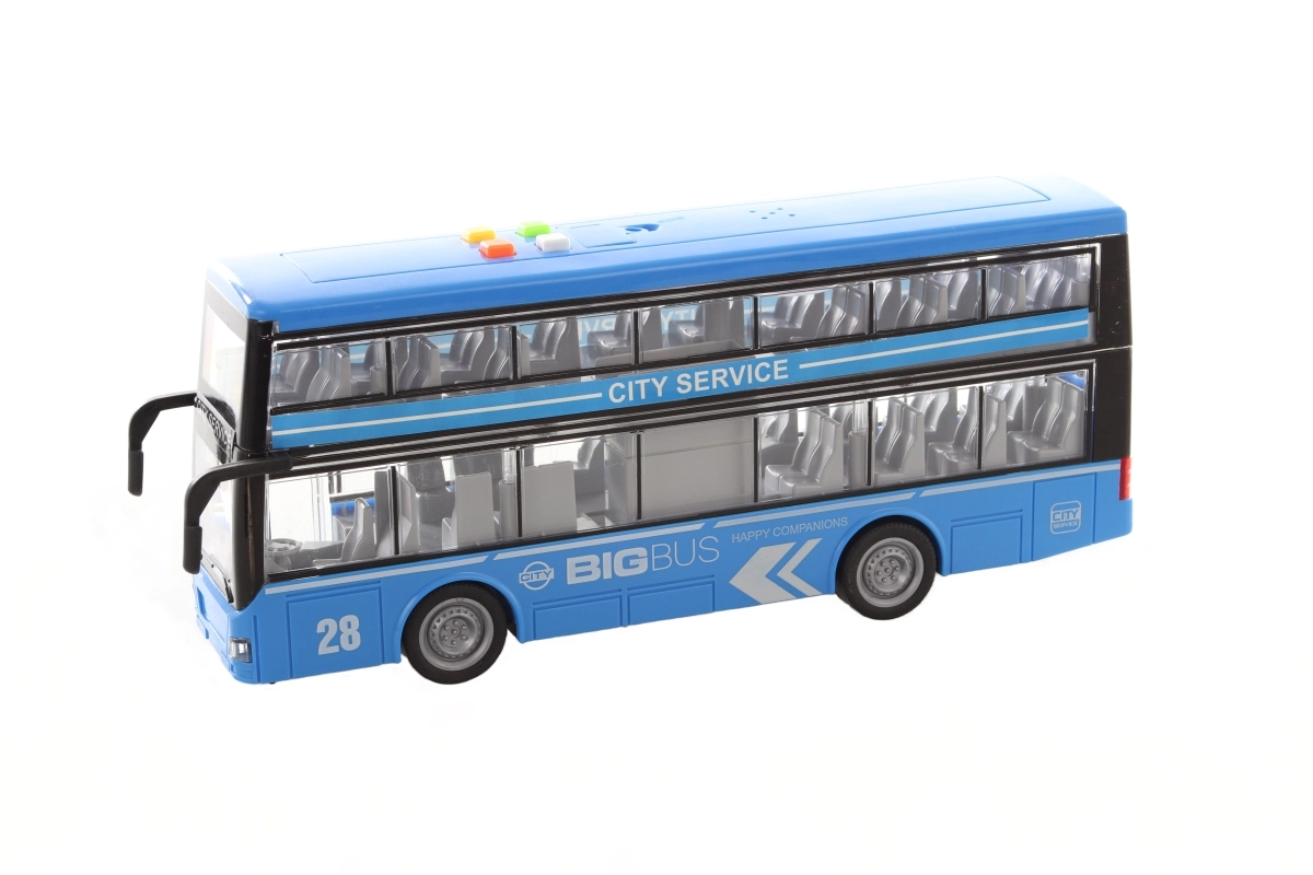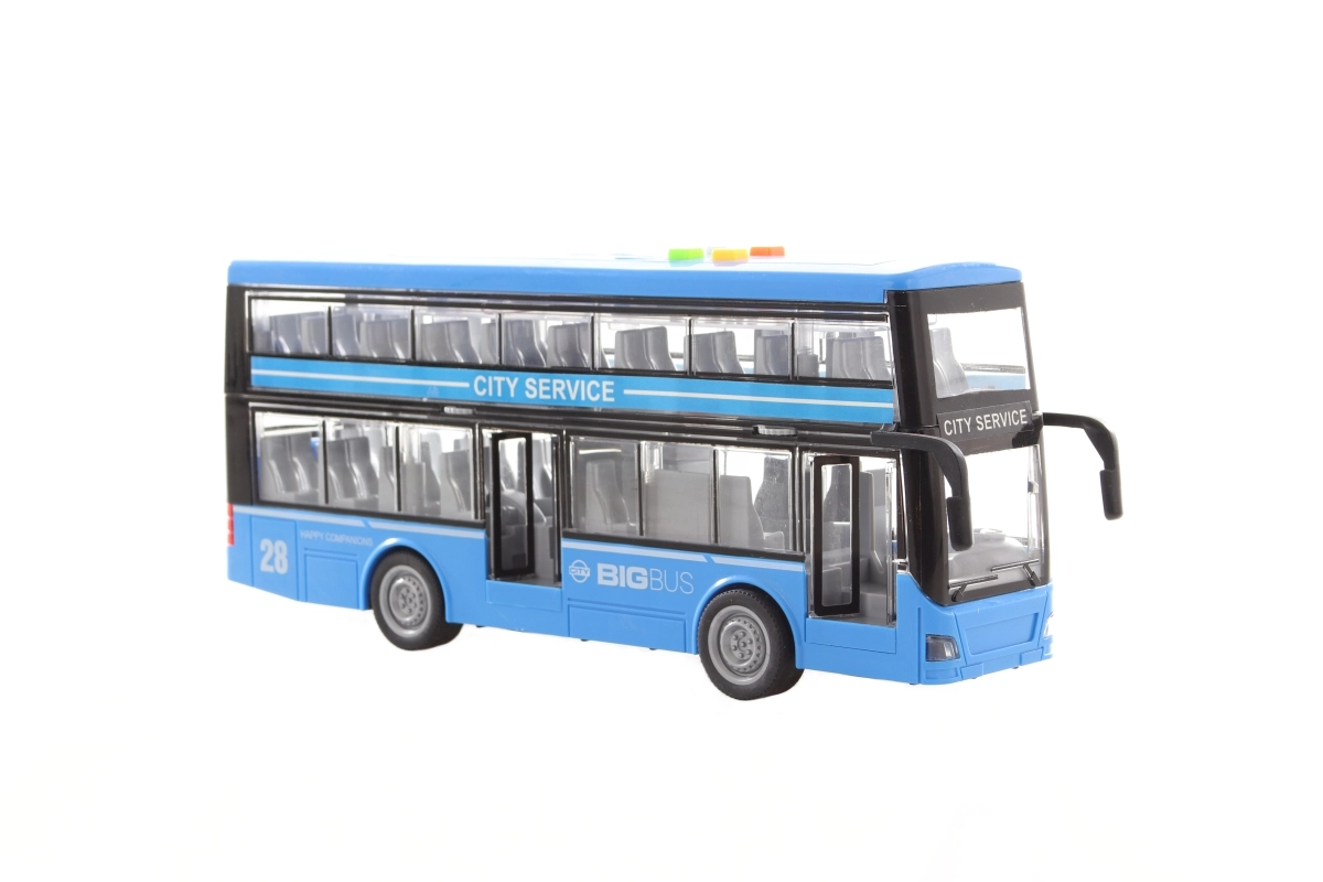 Acest autobuz albastru cu două etaje, pe baterii, va încânta toți micii pasionați de vehicule. Datorită sunetelor realiste, aduce mai multă distracție și stimulează imaginația. Construcția robustă din plastic este ideală pentru joaca de zi cu zi.