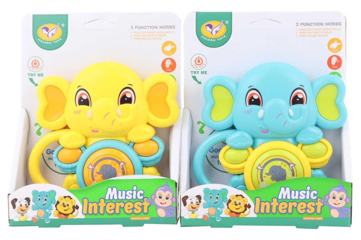Drăgălașul elefănțel pentru cei mai mici va bucura fiecare copilaș. La apăsarea tobei redă 9 melodii și sunete, dezvoltă percepția auditivă și susține motricitatea fină. Jucăria este compactă, ușor de ținut în mână și este gata de utilizare – bateriile sunt incluse în pachet.