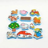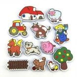 Îmbunătățiți experiența de baie a copiilor cu acest set care conține 12 abțibilduri de baie colorate din spumă inspirate de fermă. După ce sunt umezite, abțibildurile se atașează ușor pe suprafețe precum cada și faianța și pot fi mutate sau îndepărtate cu ușurință.