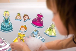Setul de abțibilduri 'Primele mele povești - Prințese' aduce distracție în fiecare baie. Este suficient să le umezești și să le lipești ușor pe suprafață și lasă copiii să creeze scene distractive: