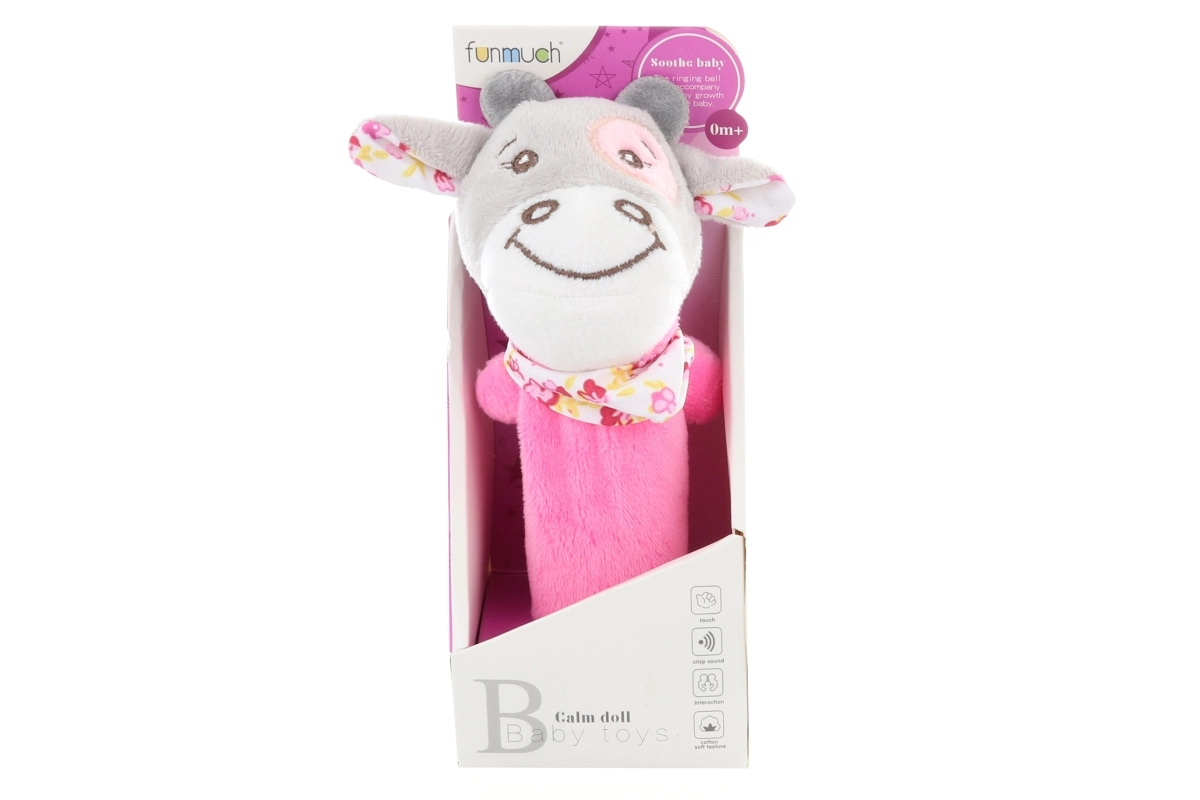 Zornăitoarea din pluș, adorabilă, în forma unei văcuțe roz, va încânta orice bebeluș. Oferă un sunet piu delicat, un material plușat plăcut și o prindere confortabilă pentru mânuțele mici. Ideală pentru stimularea simțurilor, dezvoltarea motricității și distracție acasă sau în deplasare.