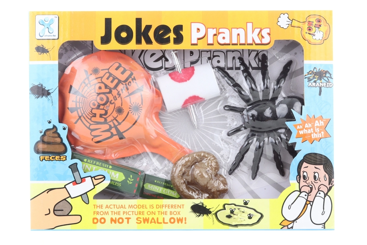 - Pernă care pârâie, excrement fals, păianjen, cui cu bandaj, gumă de mestecat cu capcană