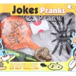 Un set distractiv de obiecte amuzante pentru poznași mici și mari, care aduce ore de râs și surprize. Conține un pernă care pârâie, excrement fals, păianjen, cui cu bandaj și gumă de mestecat cu capcană. Ideal pentru petreceri, aniversări și distracție acasă. Potrivit pentru copii de la 3 ani.