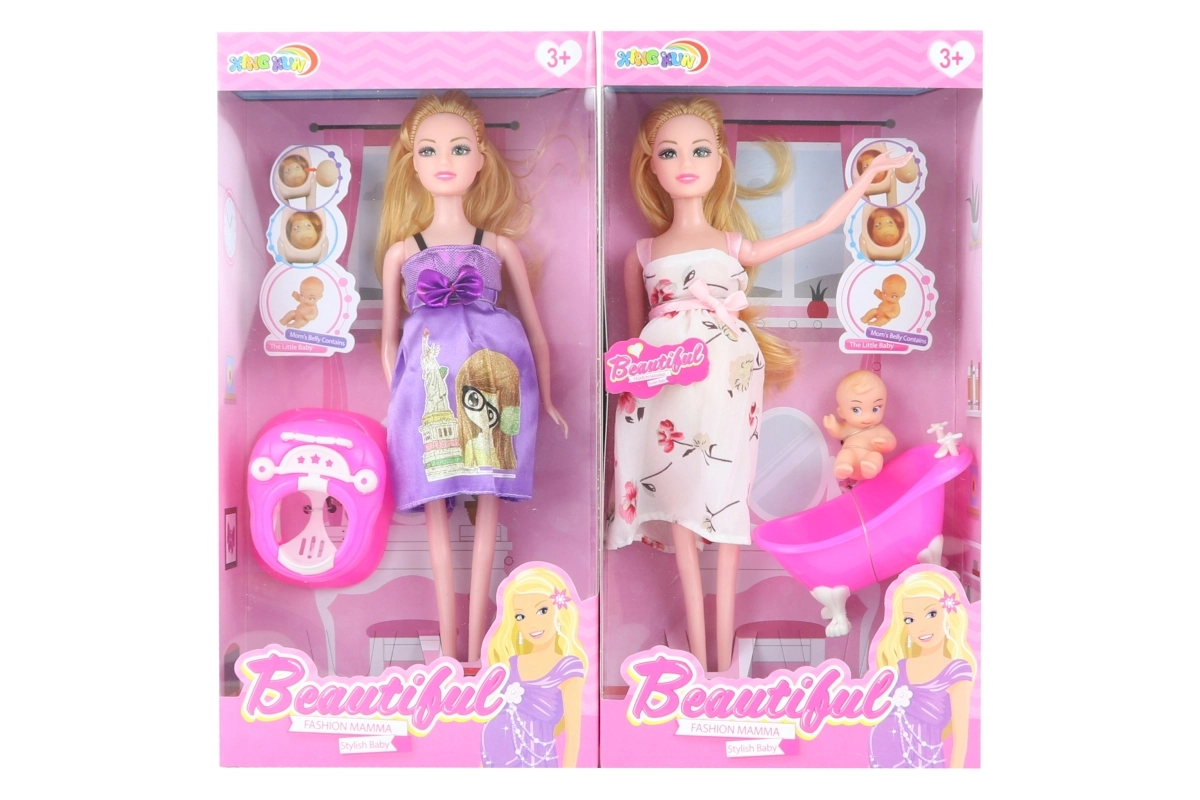 Această păpușă însărcinată, realizată cu atenție la detalii, oferă copiilor o experiență de joc unică, de tipul „familie”. În burtica păpușii se află un mic bebeluș, care poate fi scos, pentru ca apoi să fie îngrijit. Pachetul conține și un scăunel/cădiță universal(ă), care extinde posibilitățile de joc și susține creativitatea.