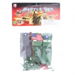 Conținutul pachetului: set de soldăței cu înălțimea de aprox. 5 cm și 3 vehicule militare cu lungimea de aprox. 10 cm. Recomandat copiilor de la 3 ani.