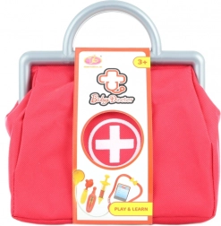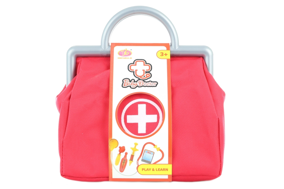 Setul de doctor conține stetoscop din plastic, otoscop, injecție, ecuson și termometru. Dimensiunile genții: aprox. 20 x 22,5 x 8,5 cm. Vârsta 3+