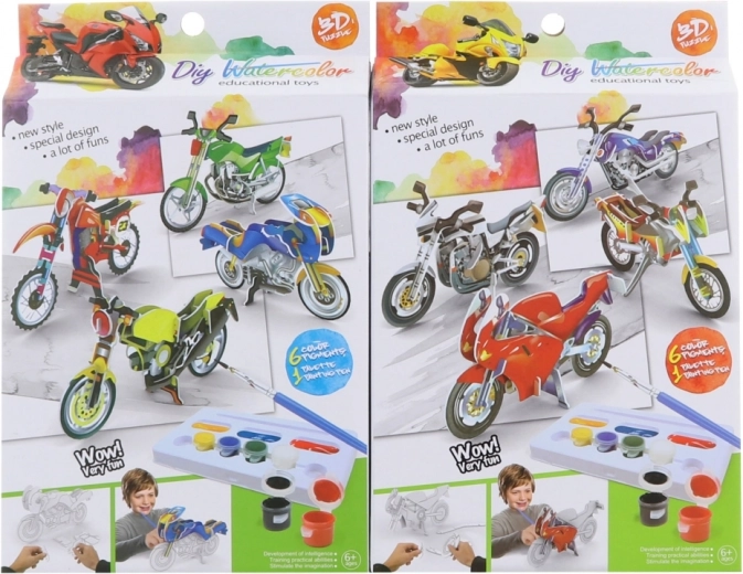 - Motociclete 3D din carton pentru colorat, 6 culori, pensulă, paletă
