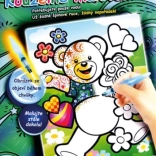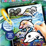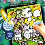 Pictura magică cu apă este modalitatea ideală de a-ți distra micii artiști. Este nevoie doar de apă, iar imaginile colorate apar imediat ce umeziți stratul special alb. După câteva minute de uscare, imaginea este din nou acoperită de alb, astfel că pictura poate fi repetată în mod continuu.