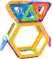 Încercați setul de construcție magnetic MagKiss, care oferă nu doar distracție, ci și susținerea dezvoltării și creativității copiilor dumneavoastră. Acest set include 24 de piese sub formă de triunghiuri, pătrate și hexagoane. Datorită simplității și versatilității, setul este potrivit pentru a construi orice formă fantezistă.