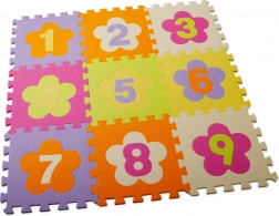 Puzzle colorate din spumă, cu cifre și piese detașabile, creează o suprafață de joacă moale și sigură pentru copiii de la 3 ani. Piesele de 28 × 28 cm se îmbină ușor, au suprafață striată antiderapantă, sunt lavabile, atenuează zgomotul și izolează de frig. Pachetul conține 9 piese pătrate.