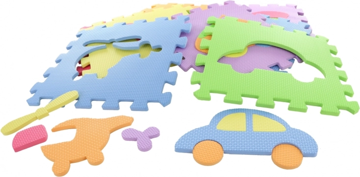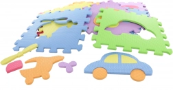 Acest set de puzzle-uri colorate din spumă oferă copiilor nu doar o bază confortabilă și sigură, ci și o modalitate distractivă de învățare. Formele detașabile (mijloace de transport și alte obiecte) susțin motricitatea fină, recunoașterea formelor și a culorilor și dezvoltarea imaginației în timpul asamblării.