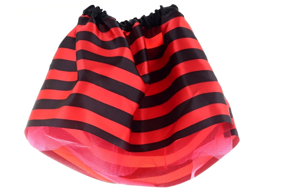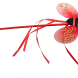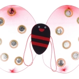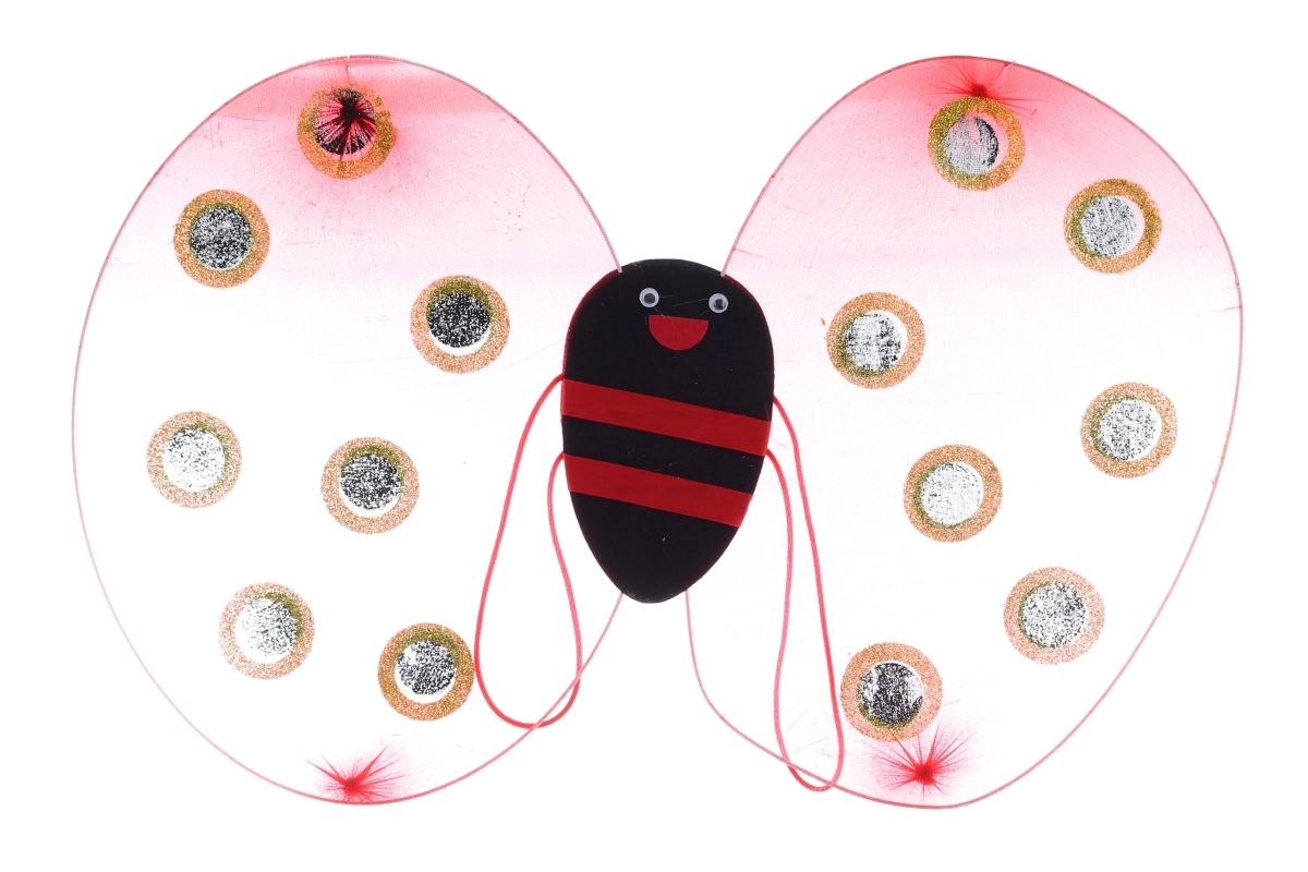 Setul cuprinde aripi translucide roz-roșii cu buline sclipitoare, fustă elastică în dungi roșu-negru, bentiță cu antene elastice și baghetă asortată cu panglici. Mărimea setului este concepută pentru copii de la 3 ani; dimensiunea ambalajului aprox. 49 × 57 cm.