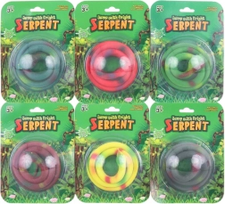 Șarpele de gumă, rulat ca un ghem, este gata pentru joacă nesfârșită. Datorită materialului moale și elastic, se întinde ușor și revine la forma inițială. Copiii se vor distra de minune cu el atât acasă, cât și afară, dezvoltând totodată motricitatea fină și imaginația.