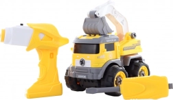 Descoperiți excavatorul multifuncțional cu șuruburi, care îmbină construcția creativă și condusul dinamic. Copiii își asamblează singuri vehiculul cu șurubelnița sau bormașina incluse, din care se poate scoate motorul. După introducerea motorului în vehicul, jucăria devine o mașină telecomandată cu mers înainte și înapoi.
