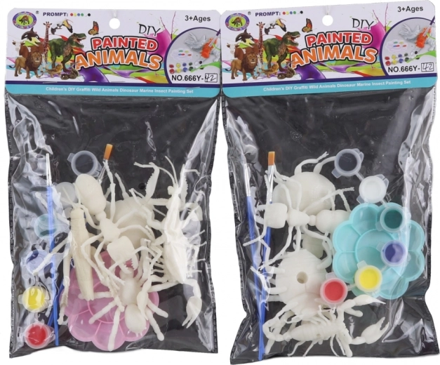 - Figurine din plastic cu animăluțe pentru colorat, 6 culori, 2 pensule, paletă