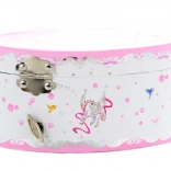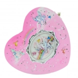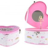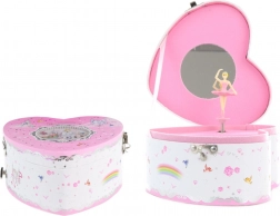 Această fermecătoare cutie muzicală pentru bijuterii, în formă de inimă, este locul ideal pentru depozitarea inelelor, cerceilor și a micilor comori. După întoarcerea cheiței, în interior pornește o melodie, iar micuța balerină începe să se rotească elegant în fața oglinzii. Designul în nuanțe de roz, cu motive delicate, îi va încânta atât pe copii, cât și pe adulți.