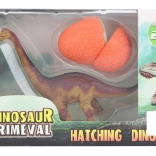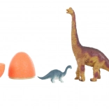 Manipularea oului și a figurinelor dezvoltă abilitățile și încurajează jocul creativ cu tematică preistorică.