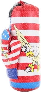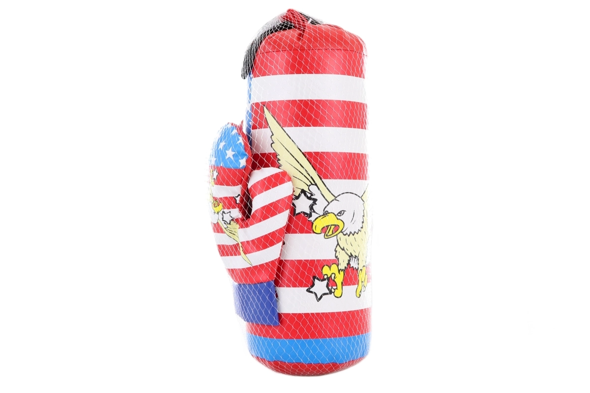Set mic de box pentru copii, distractiv și sigur, include sac de box și mănuși. Ideal pentru primele etape sportive, dezvoltarea coordonării și consumul de energie. Ambalat într-o plasă practică. Ușor, rezistent și potrivit de la 3 ani.